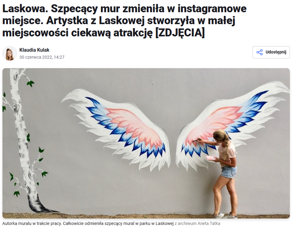 Laskowa. Szpecący mur zmieniła w instagramowe miejsce. Artystka z Laskowej stworzyła w małej miejscowości ciekawą atrakcję
