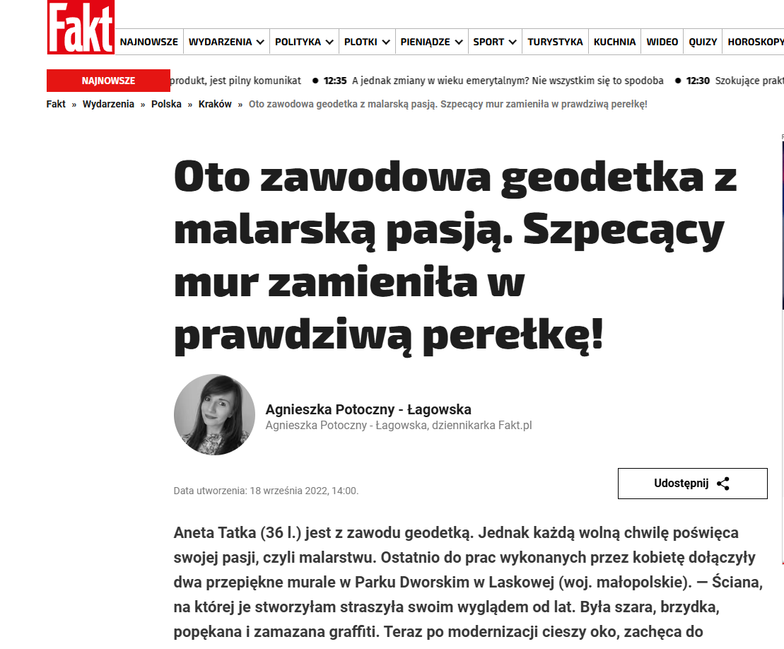 Oto zawodowa geodetka z malarską pasją. Szpecący mur zamieniła w prawdziwą perełkę!