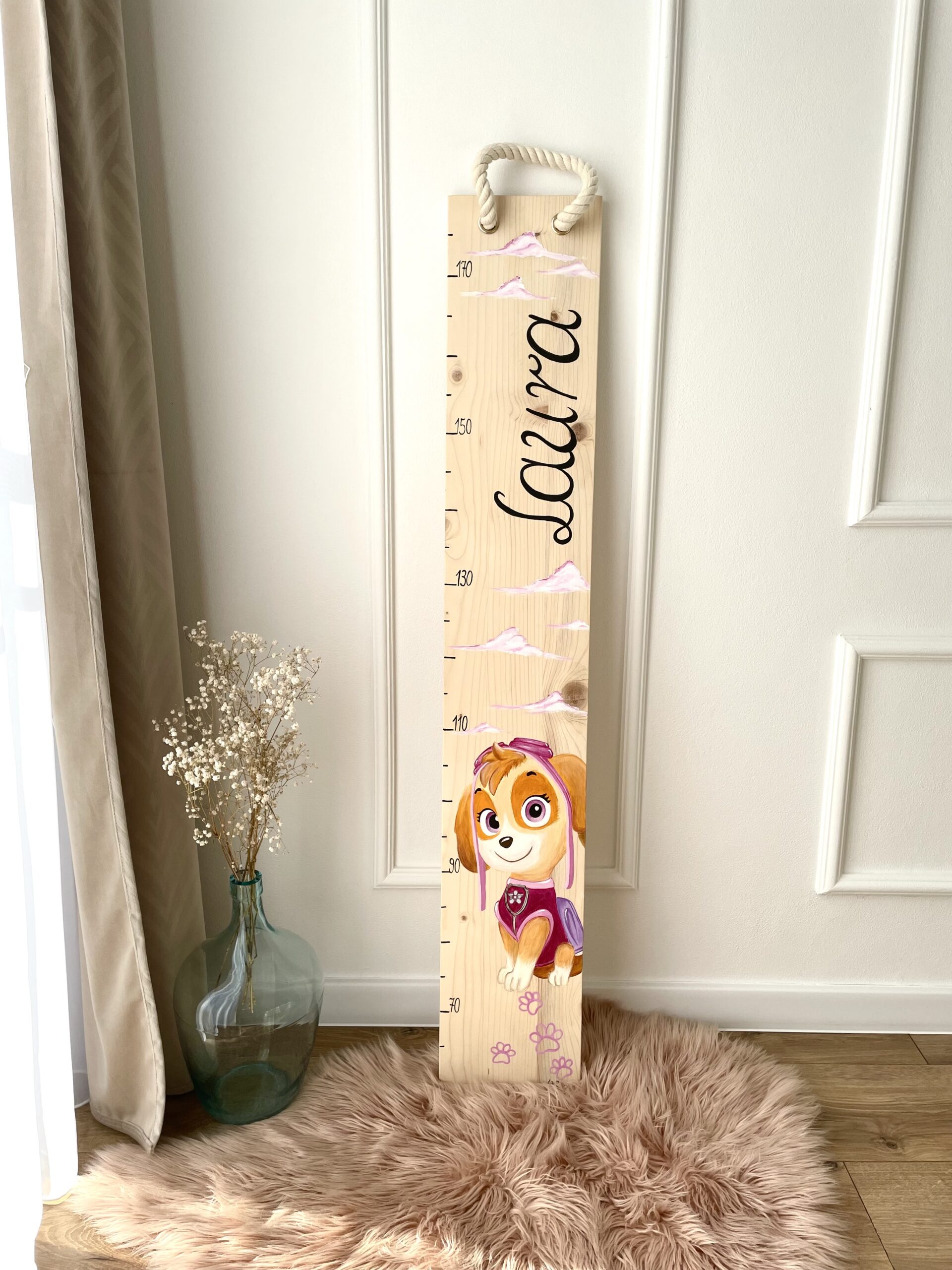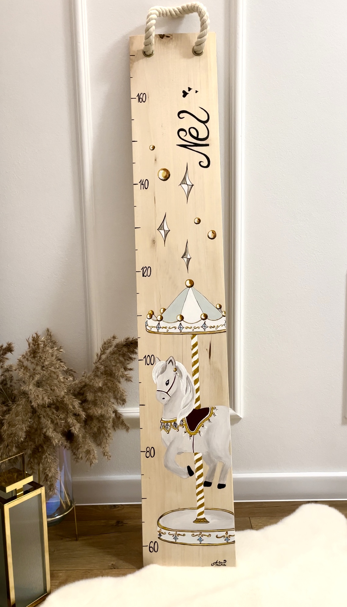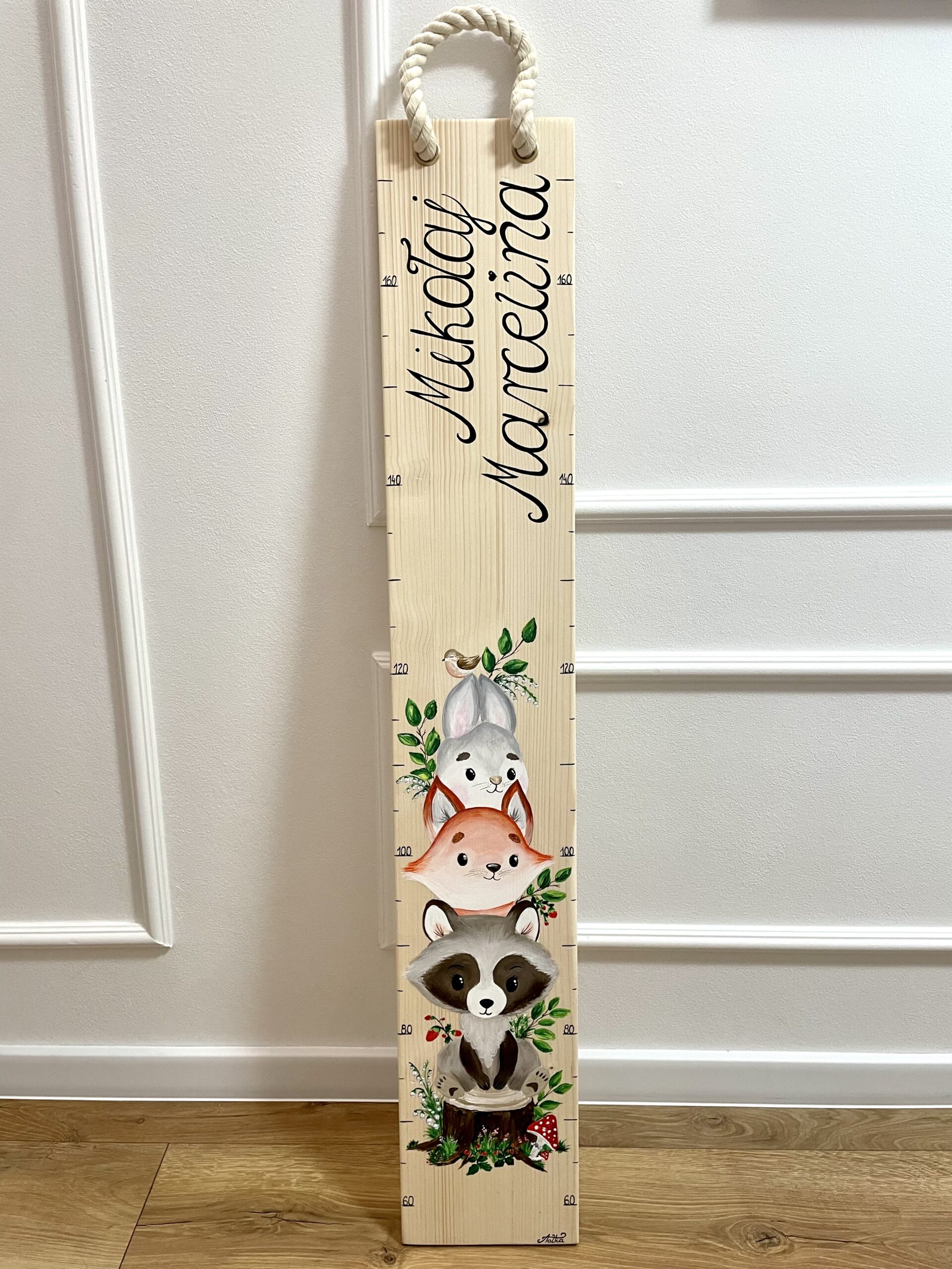 Tworzę personalizowane miarki wzrostu, które łączą funkcjonalność z estetyką i wprowadzają radość do dziecięcych pokoi.