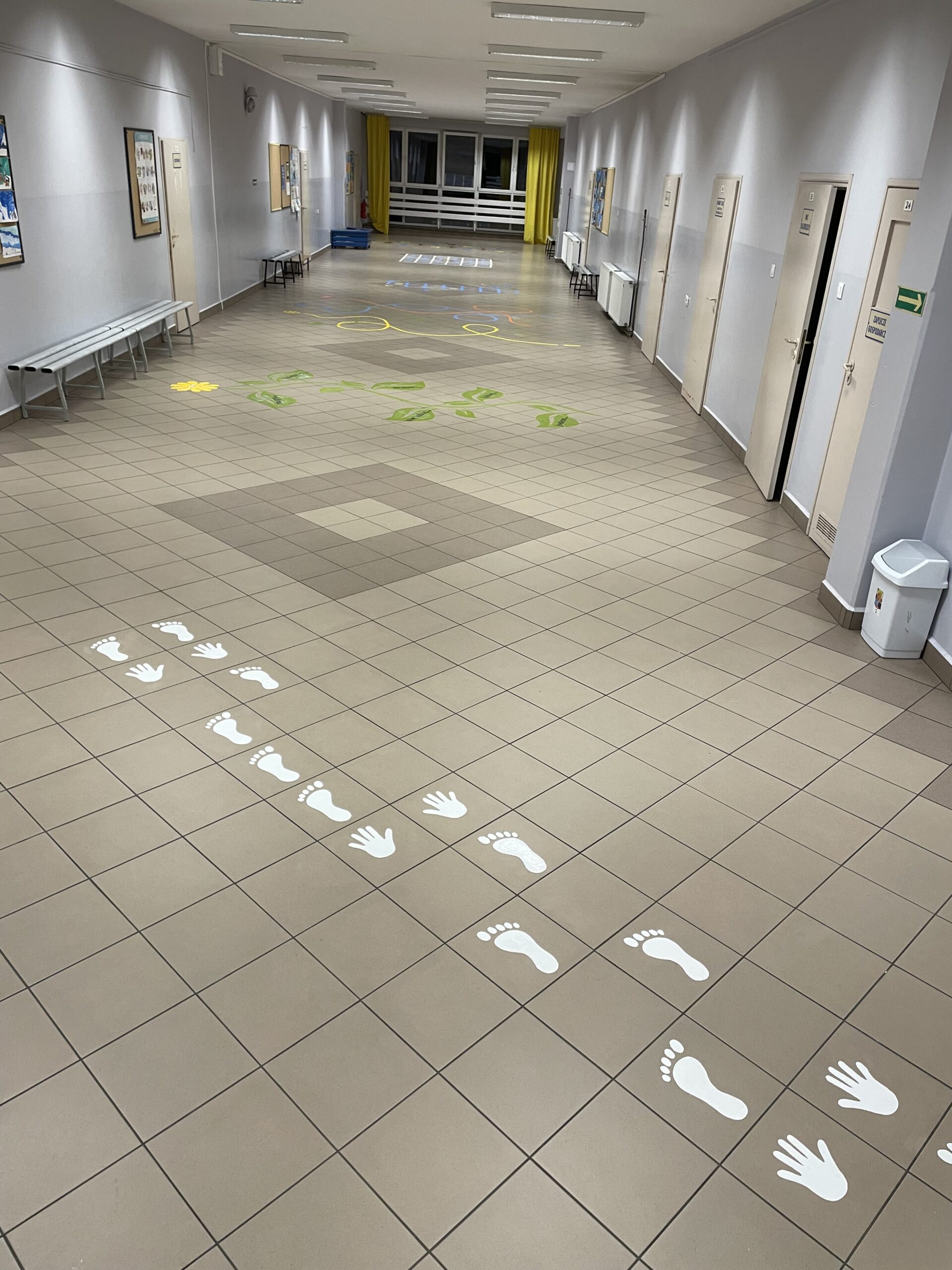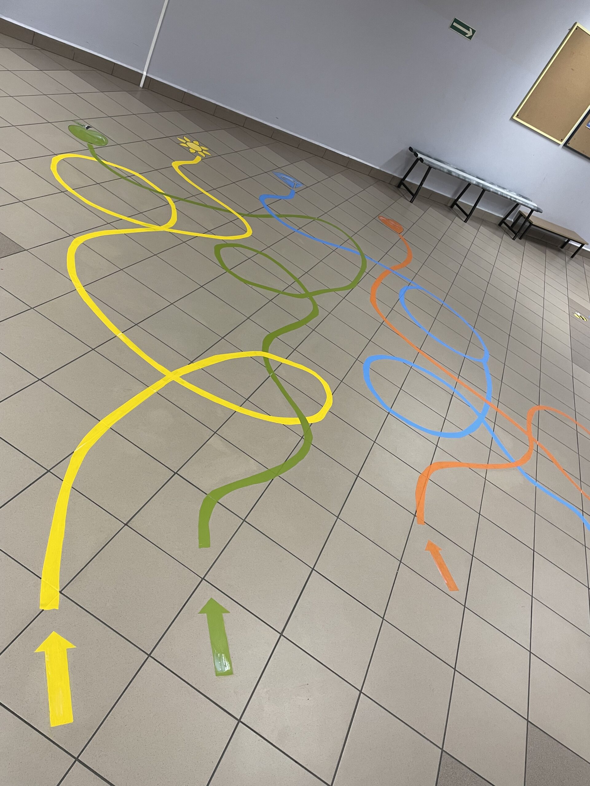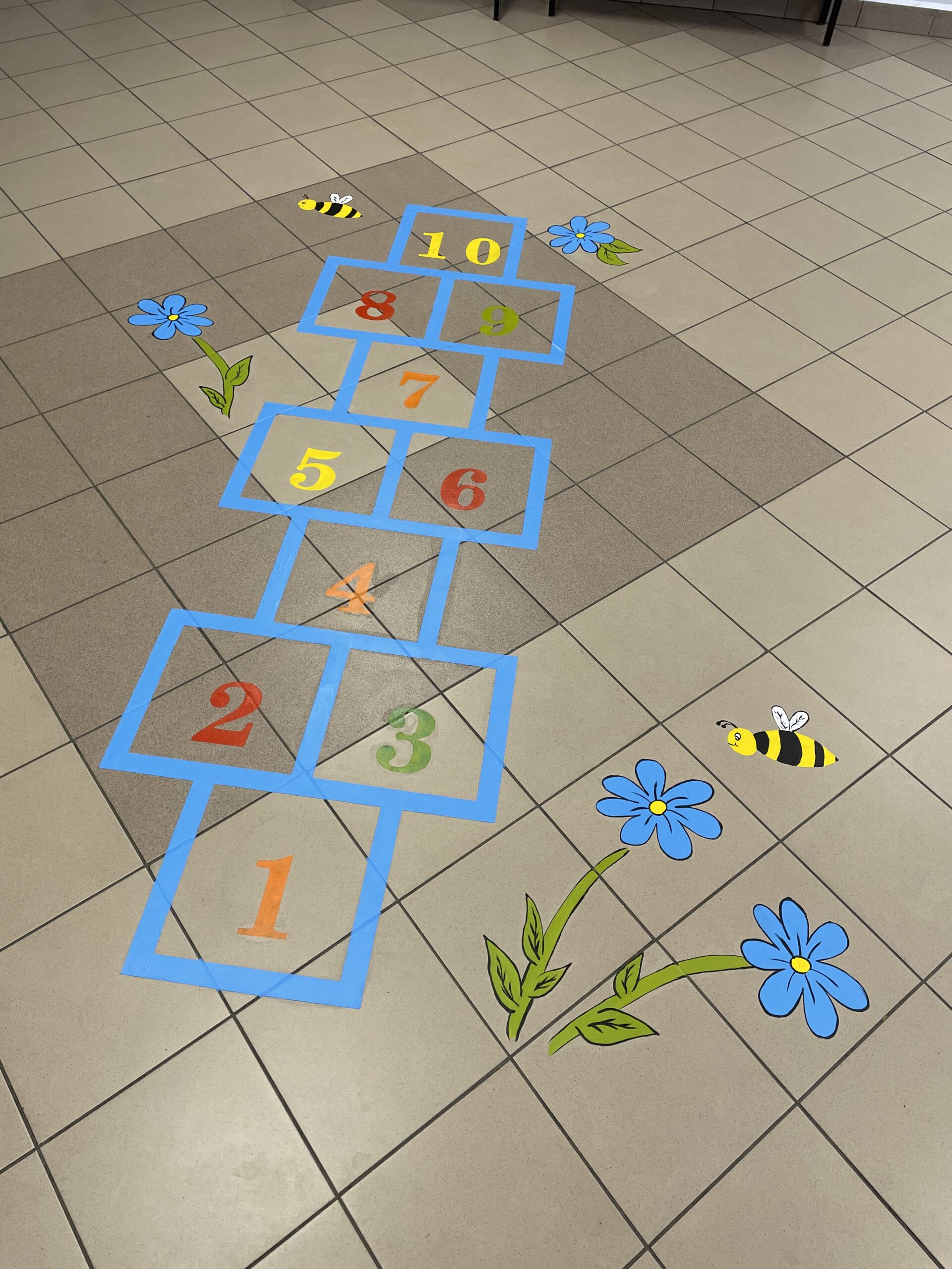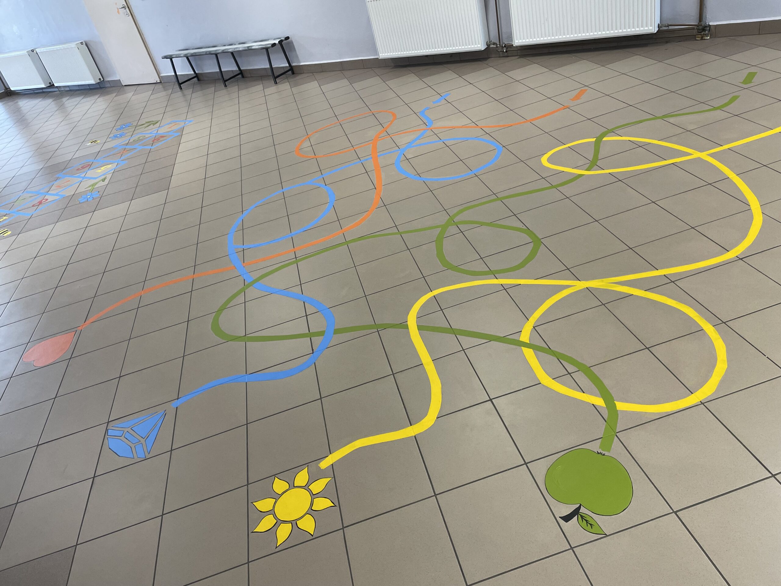 – realizacja polegała na zaprojektowaniu oraz namalowaniu na nawierzchni z płytek gresowych sześciu rodzajów gier nawierzchniowych na szkolnym korytarzu. Farby użyte do realizacji projektu to specjalistyczne farby które zapewniają trwałość oraz łatwość w utrzymaniu czystości.